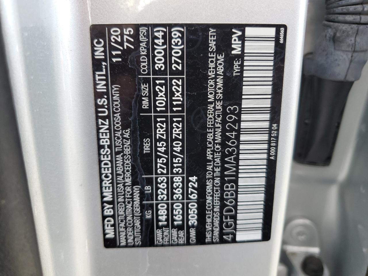 2021 MERCEDES-BENZ GLE-CLASS - 4JGFD6BB1MA364293, цвет - Серебряный, 3.0, Бензин, Полный привод из США