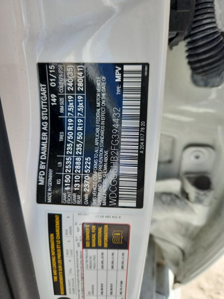 2015 MERCEDES-BENZ GLK-CLASS - WDCGG5HB2FG394432, цвет - Белый, 3.5, Бензин, Задний привод из США