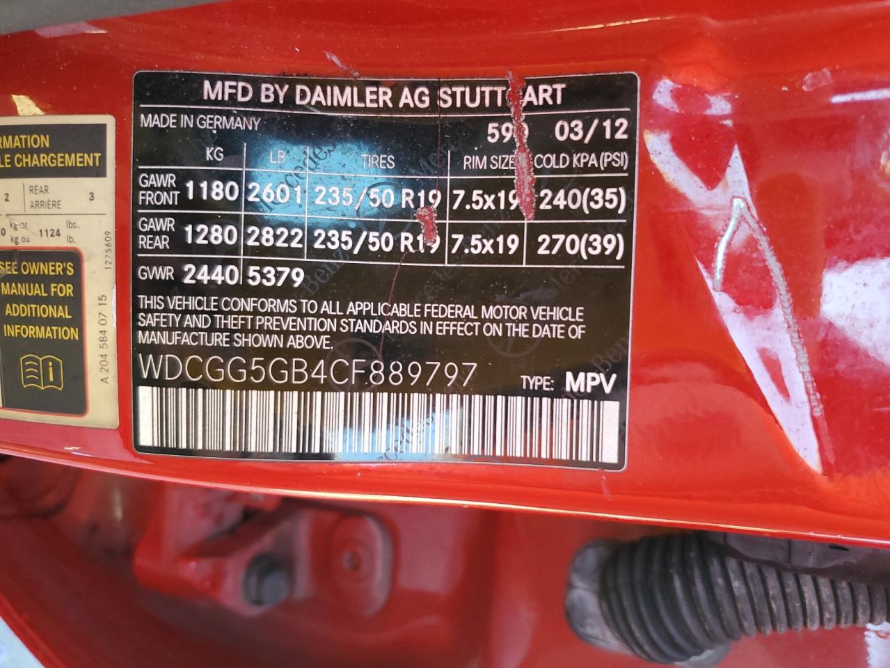 Цвет КрасныйЦилиндры 6Привод Задний приводVIN WDCGG5GB4CF889797Состояние Заводится и едет (проверено)Повреждения По бокамДата аукциона 2025-10-13