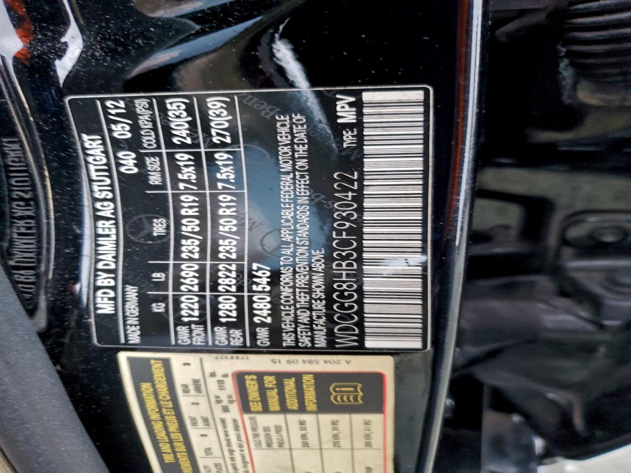 Цвет ЧерныйЦилиндры 6Привод Полный приводVIN WDCGG8HB3CF930422Состояние НеизвестноПовреждения Передняя или задняяДата аукциона 2025-12-17