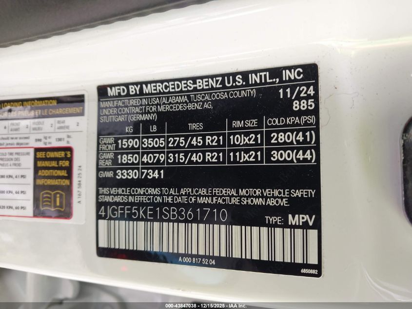 2025 MERCEDES-BENZ GLS-CLASS - 4JGFF5KE1SB361710, цвет - , 3.0, Бензин, Полный привод из США