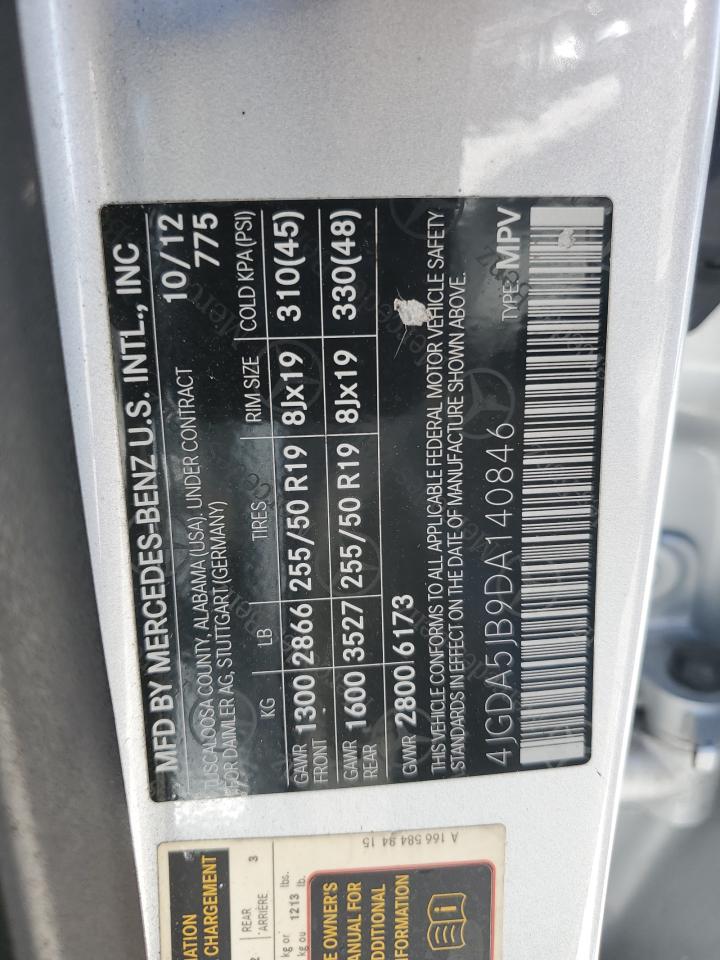 2013 MERCEDES-BENZ M-CLASS - 4JGDA5JB9DA140846, цвет - Серебряный, 3.5, Бензин, Задний привод из США