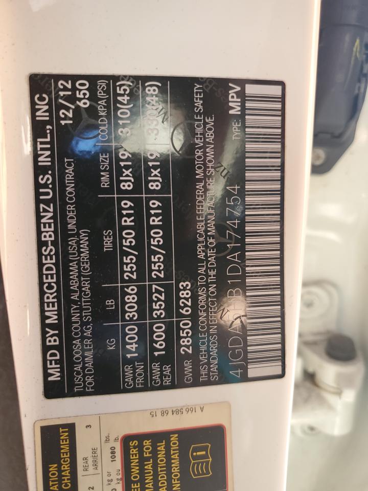 2013 MERCEDES-BENZ M-CLASS - 4JGDA5HB1DA174754, цвет - Белый, 3.5, Бензин, Полный привод из США