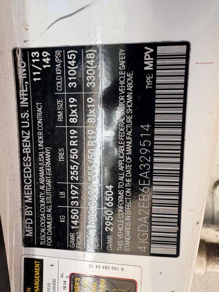 2014 MERCEDES-BENZ M-CLASS - 4JGDA2EB6EA329514, цвет - Белый, 3.0, Дизель, Полный привод из США