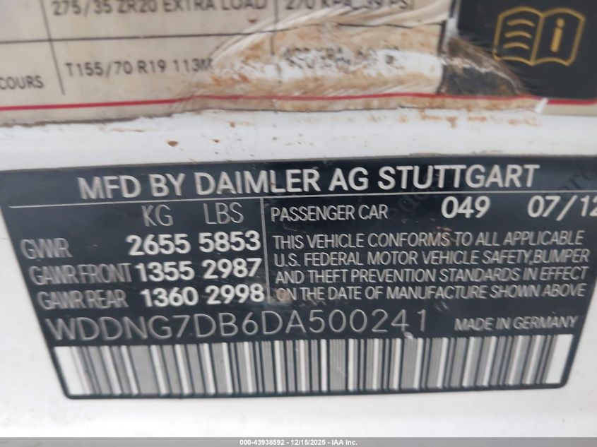 Цвет Цилиндры 8Привод Задний приводVIN WDDNG7DB6DA500241Состояние НеизвестноПовреждения Неизвестно