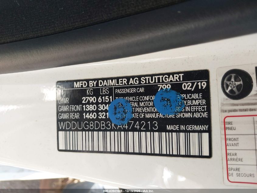 Цвет БелыйЦилиндры 8Привод Задний приводVIN WDDUG8DB3KA474213Состояние ЗаводитсяПовреждения Передняя левая