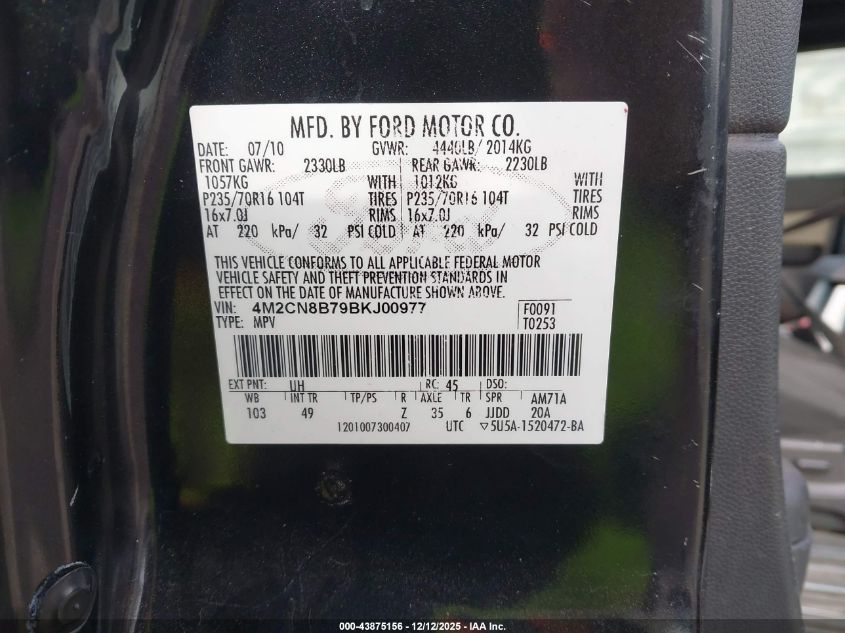 2011 MERCURY MARINER - 4M2CN8B79BKJ00977, цвет - Черный, 2.5, Бензин, Передний привод из США