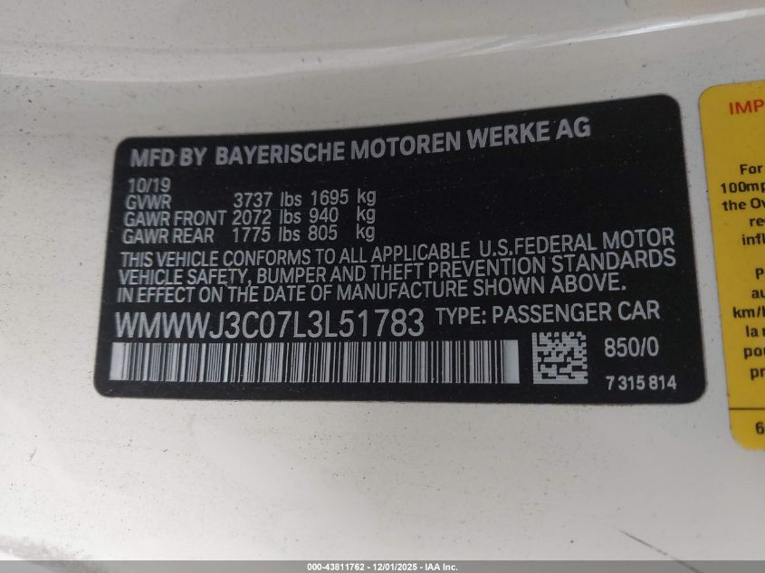 2020 MINI CONVERTIBLE - WMWWJ3C07L3L51783, цвет - Белый, 1.5, Бензин, Передний привод из США
