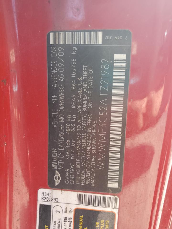 2010 MINI COOPER - WMWMF3C52ATZ21982, цвет - Красный, 1.6, Бензин, из США