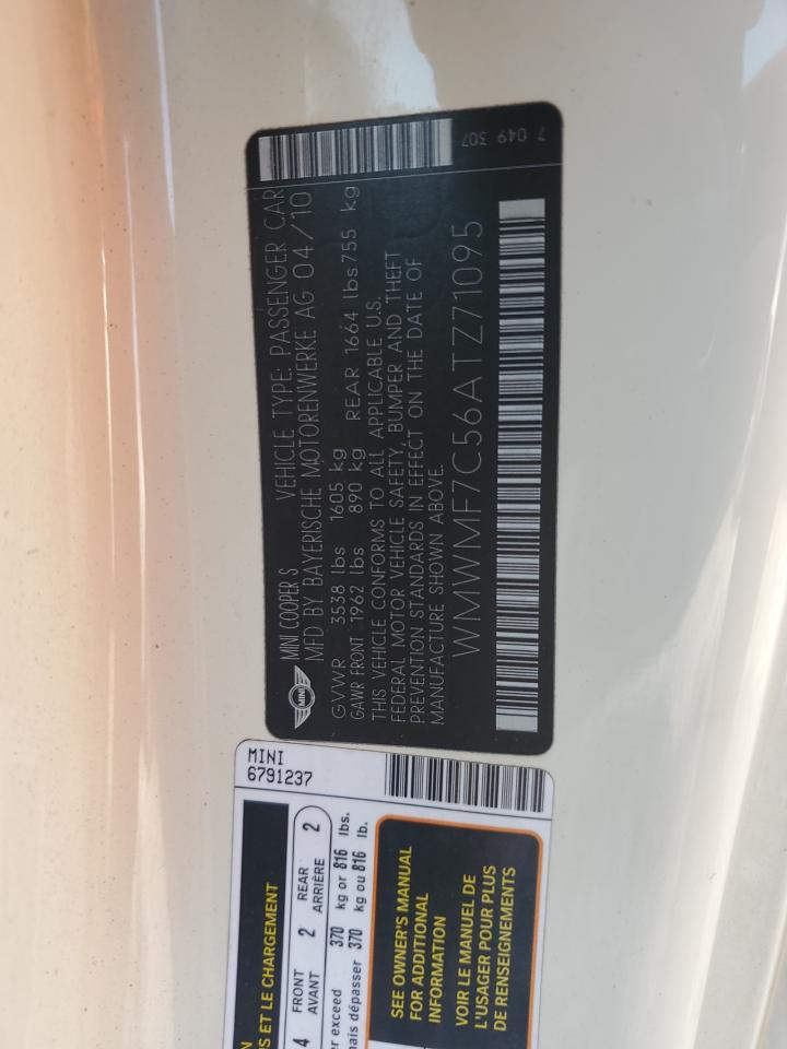 2010 MINI COOPER - WMWMF7C56ATZ71095, цвет - Белый, 1.6, Бензин, из США