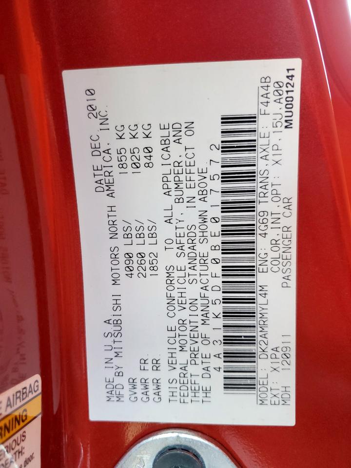 2011 MITSUBISHI ECLIPSE - 4A31K5DF0BE017572, цвет - Красный, 2.4, Бензин, из США