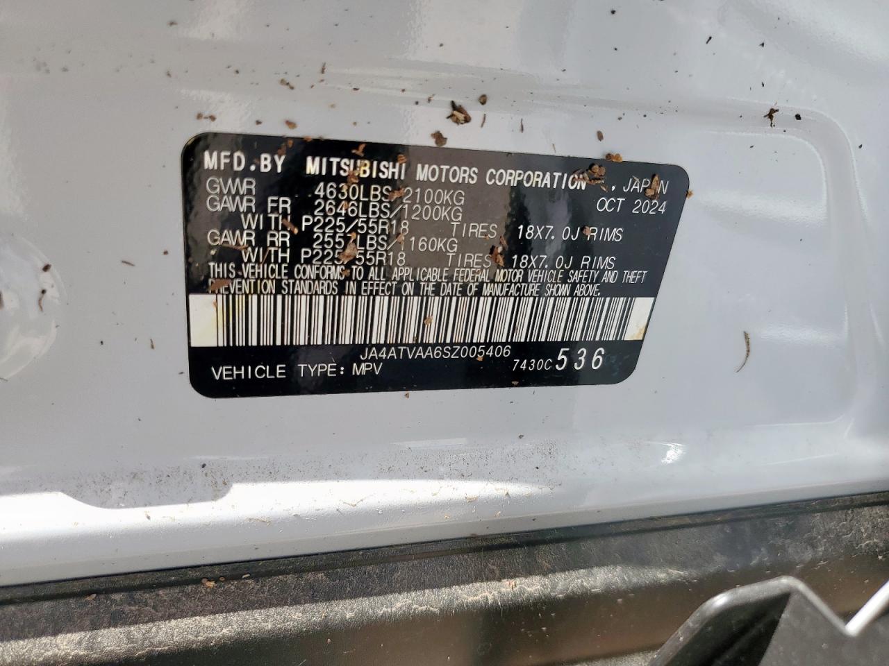 2025 MITSUBISHI ECLIPSE - JA4ATVAA6SZ005406, цвет - Белый, 1.5, Бензин, Полный привод из США