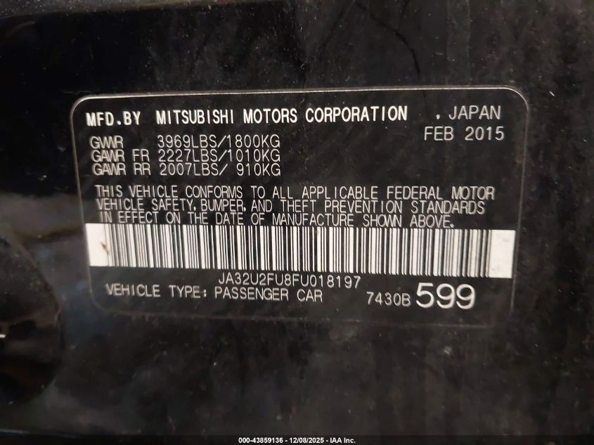 2015 MITSUBISHI LANCER - JA32U2FU8FU018197, цвет - Черный, 2.0, Бензин, Передний привод из США