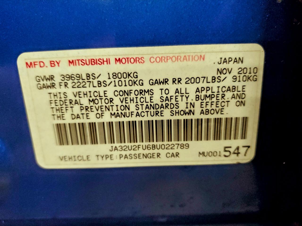 2011 MITSUBISHI LANCER - JA32U2FU6BU022789, цвет - Синий, 2.0, Бензин, из США
