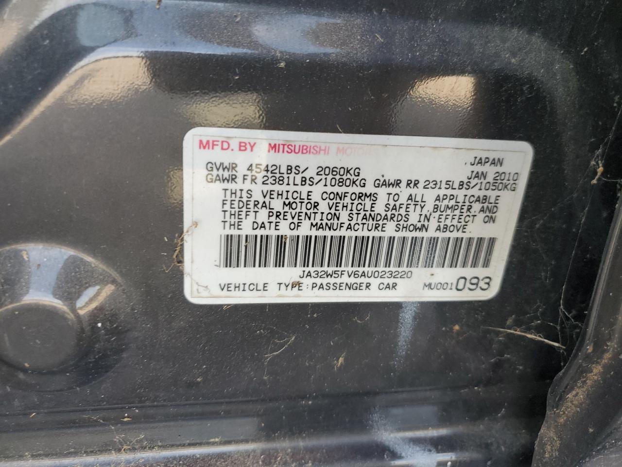 2010 MITSUBISHI LANCER EVOLUTION - JA32W5FV6AU023220, цвет - Черный, 2.0, Бензин, Полный привод из США