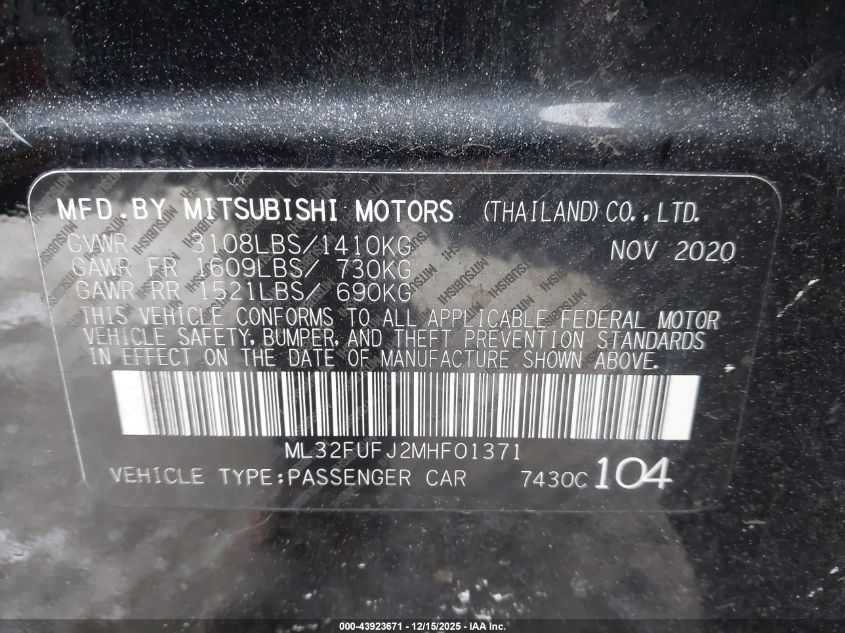 2021 MITSUBISHI MIRAGE ES