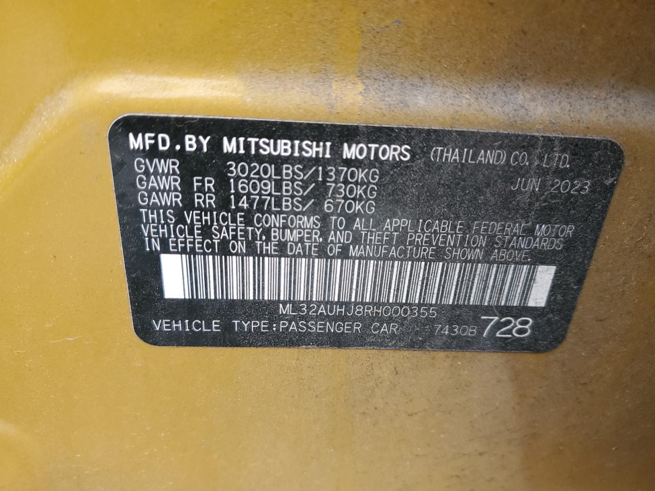 2024 MITSUBISHI MIRAGE - ML32AUHJ8RH000355, цвет - Золотой, 1.2, Бензин, из США