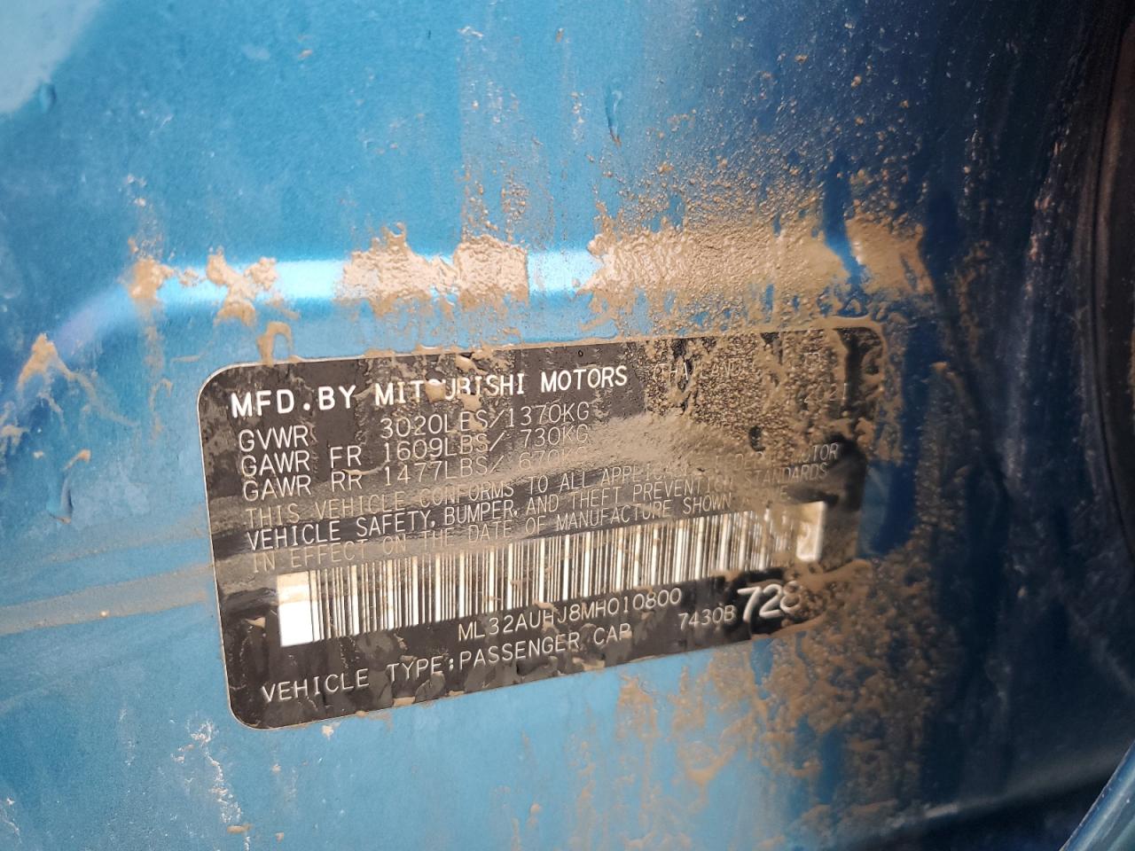 2021 MITSUBISHI MIRAGE - ML32AUHJ8MH010800, цвет - Синий, 1.2, Бензин, из США