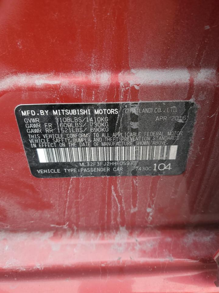 2017 MITSUBISHI MIRAGE - ML32F3FJ2HHF05937, цвет - Красный, 1.2, Бензин, из США