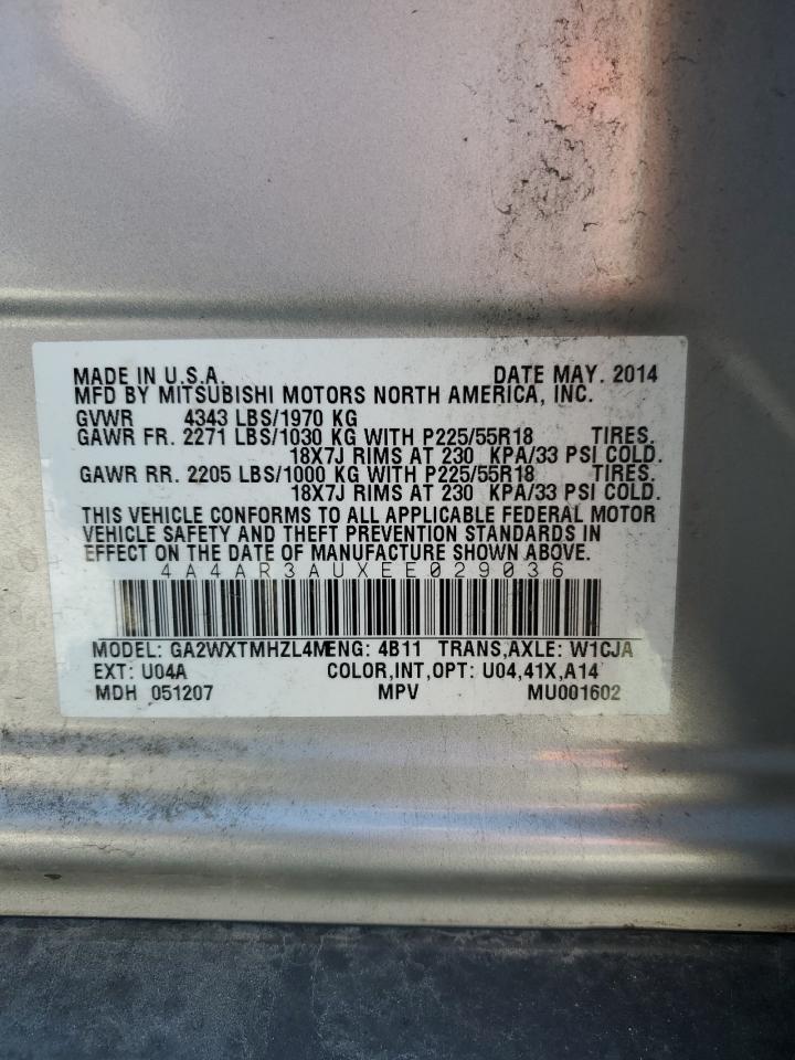 2014 MITSUBISHI OUTLANDER - 4A4AR3AUXEE029036, цвет - Серебряный, 2.0, Бензин, Полный привод из США