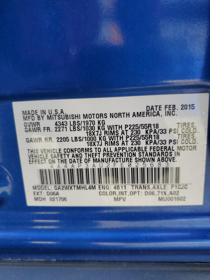 2015 MITSUBISHI OUTLANDER - 4A4AP3AU2FE025683, цвет - Синий, 2.0, Бензин, из США