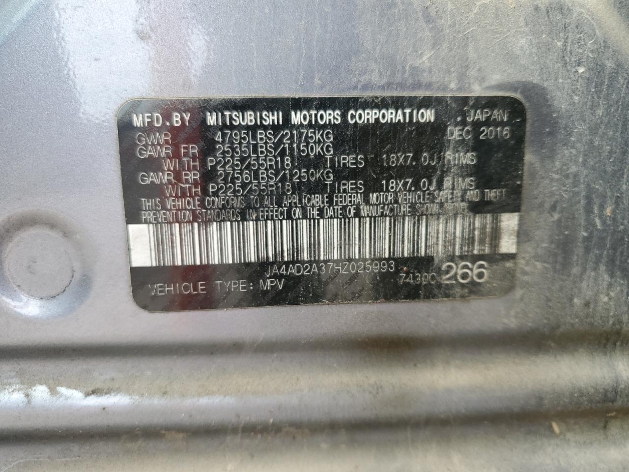 2017 MITSUBISHI OUTLANDER - JA4AD2A37HZ025993, цвет - Серебряный, 2.4, Бензин, из США