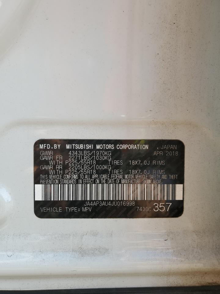 2018 MITSUBISHI OUTLANDER - JA4AP3AU4JU016998, цвет - Белый, 2.0, Бензин, из США