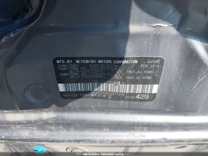 2018 MITSUBISHI OUTLANDER - JA4JZ4AX8JZ611379, цвет - Серый, 3.0, Бензин, Полный привод из США