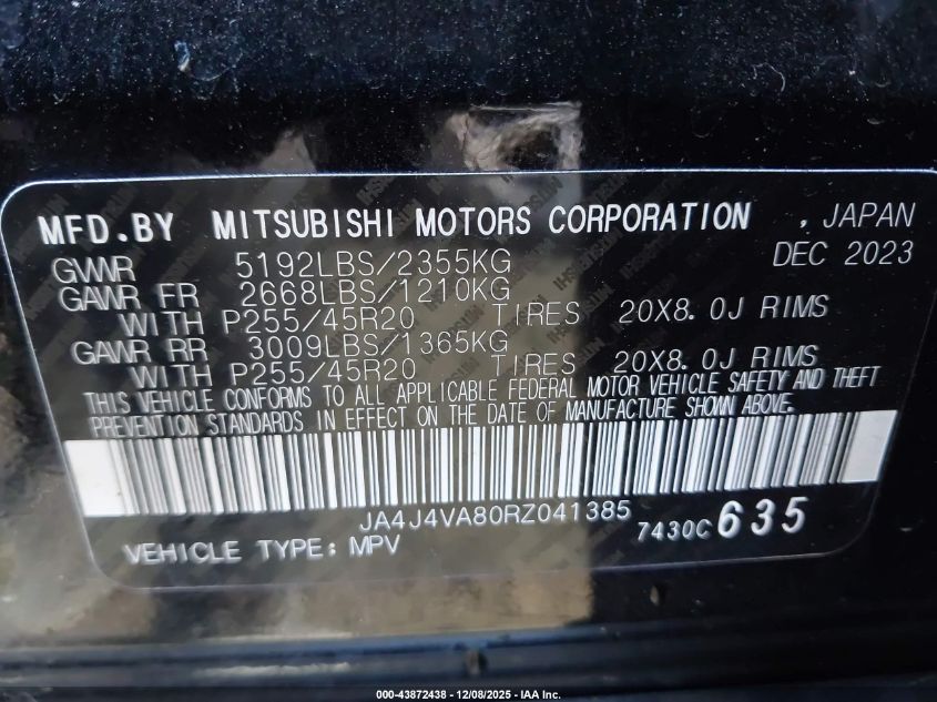 2024 MITSUBISHI OUTLANDER - JA4J4VA80RZ041385, цвет - Черный, 2.5, Бензин, Полный привод из США