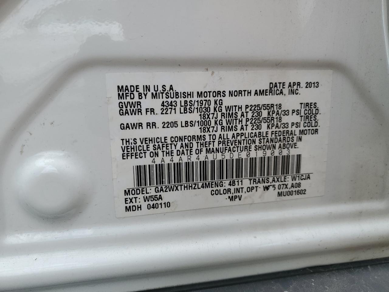 Цвет БелыйЦилиндры 4Привод Полный приводVIN 4A4AR4AU5DE019003Состояние НеизвестноПовреждения Передняя или задняя