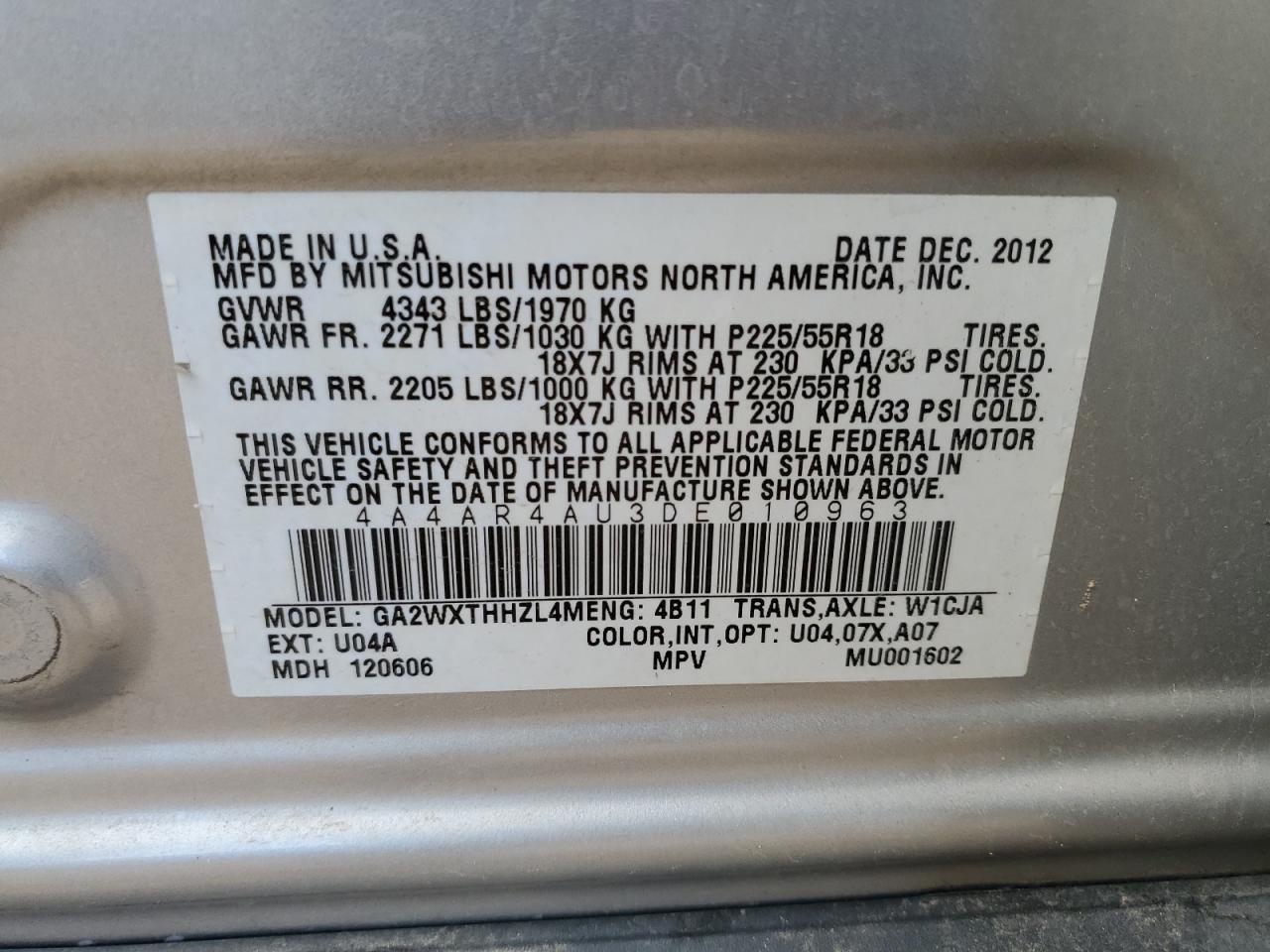2013 MITSUBISHI OUTLANDER - 4A4AR4AU3DE010963, цвет - Серебряный, 2.0, Бензин, Полный привод из США