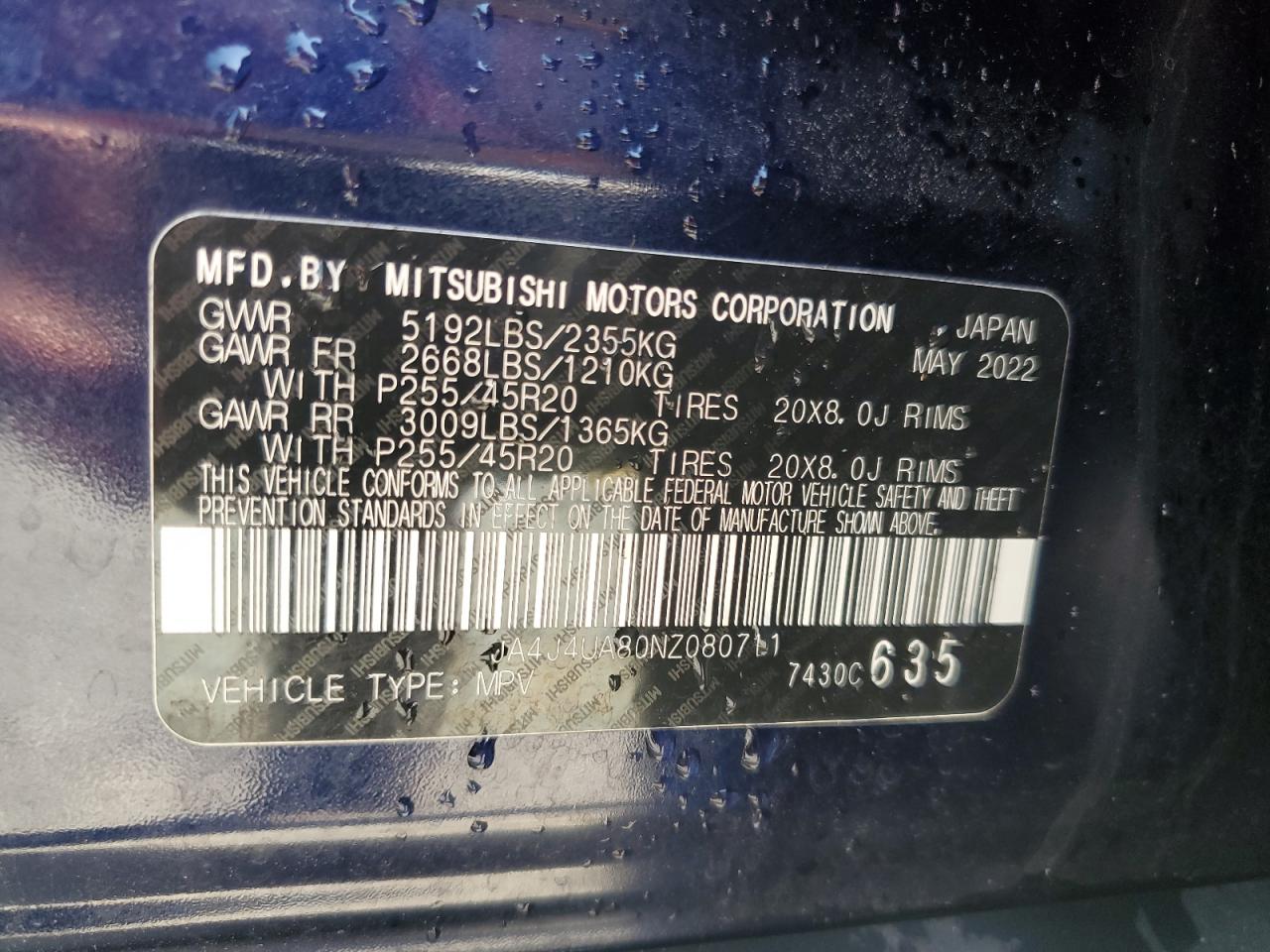 Цвет СинийЦилиндры 4Привод Полный приводVIN JA4J4UA80NZ080711Состояние НеизвестноПовреждения НезначительныеДата аукциона 2025-10-09