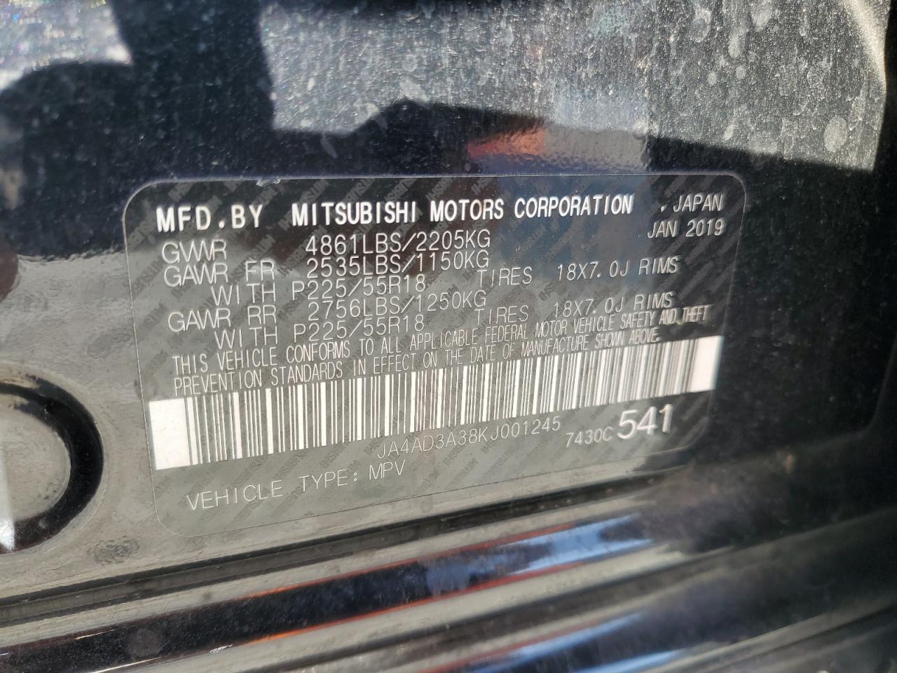 2019 MITSUBISHI OUTLANDER - JA4AD3A38KJ001245, цвет - Черный, 2.4, Бензин, из США