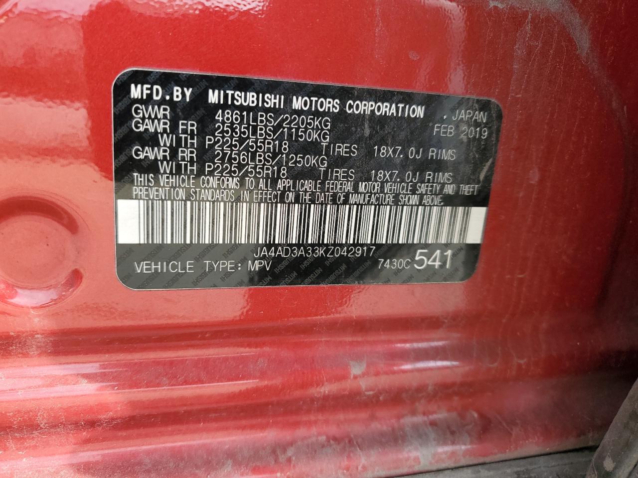 2019 MITSUBISHI OUTLANDER - JA4AD3A33KZ042917, цвет - Красный, 2.4, Бензин, из США
