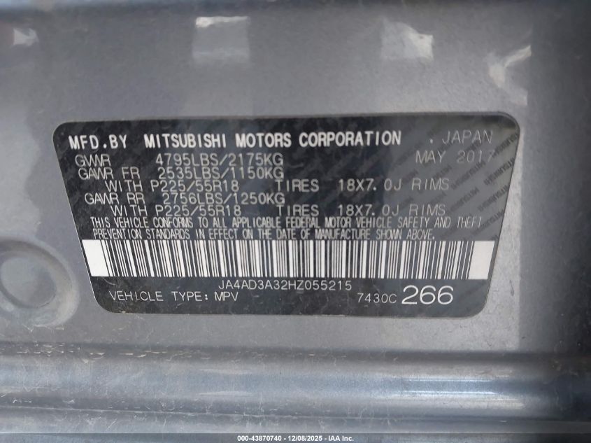 2017 MITSUBISHI OUTLANDER - JA4AD3A32HZ055215, цвет - Серый, 2.4, Бензин, Передний привод из США