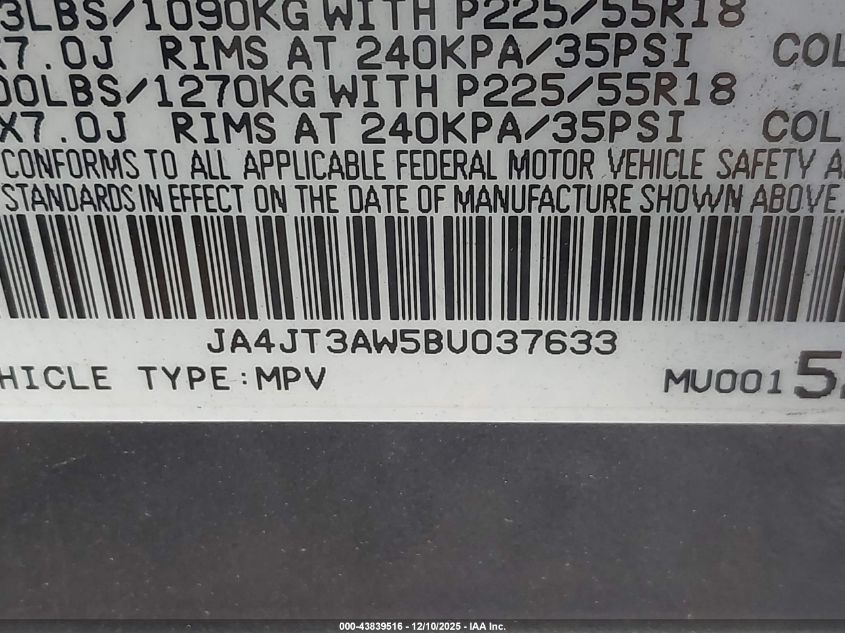 Цвет СерыйЦилиндры 4Привод Полный приводVIN JA4JT3AW5BU037633Состояние СтационарноПовреждения Опрокидывание