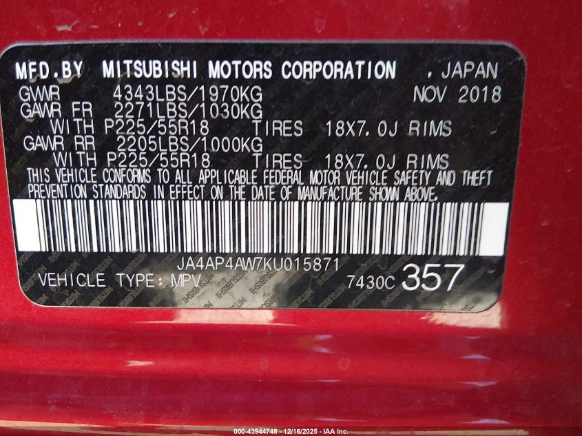 2019 MITSUBISHI OUTLANDER SPORT - JA4AP4AW7KU015871, цвет - Красный, 2.4, Бензин, Передний привод из США