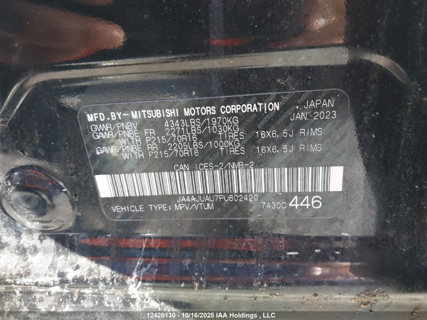 2023 MITSUBISHI RVR - JA4AJUAU7PU602420, цвет - Черный, , Бензин, Полный привод из США