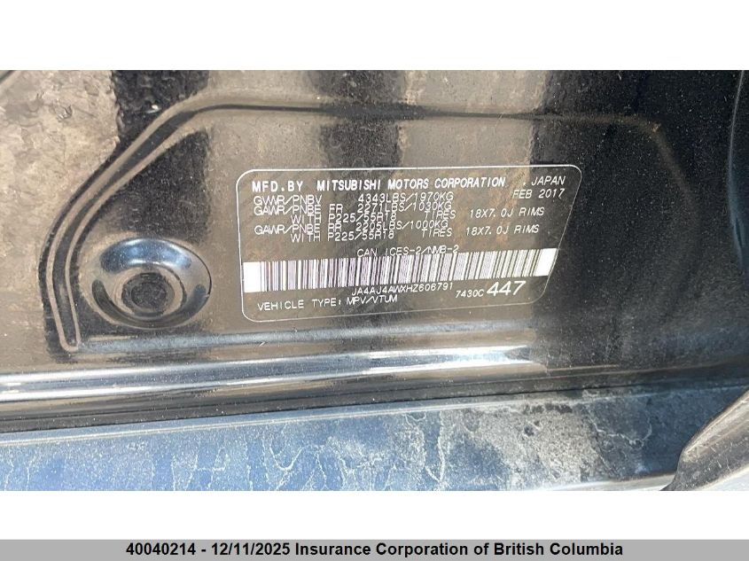 2017 MITSUBISHI RVR - JA4AJ4AWXHZ606791, цвет - Черный, , Бензин, Полный привод из США
