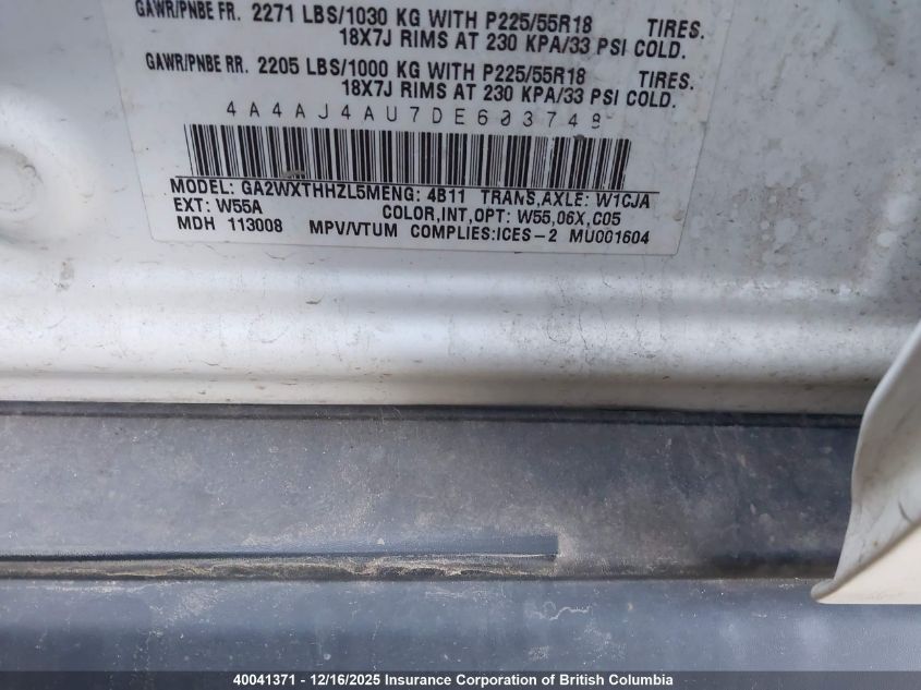 Цвет БелыйЦилиндры 4Привод Полный приводVIN 4A4AJ4AU7DE603748Состояние СтационарноПовреждения Передняя праваяДата аукциона 2025-12-19