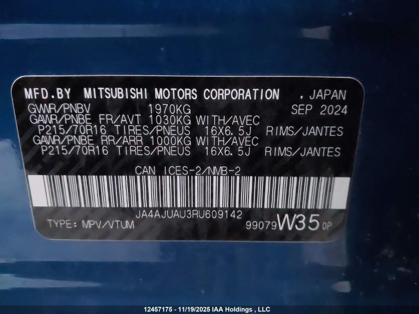 2024 MITSUBISHI RVR - JA4AJUAU3RU609142, цвет - Синий, , Бензин, Полный привод из США