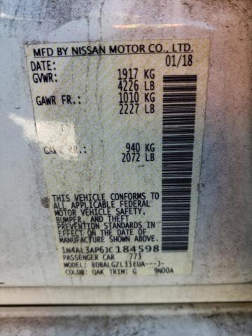 Цвет БелыйЦилиндры 4VIN 1N4AL3AP6JC184598Состояние НеизвестноПовреждения Передняя или задняя