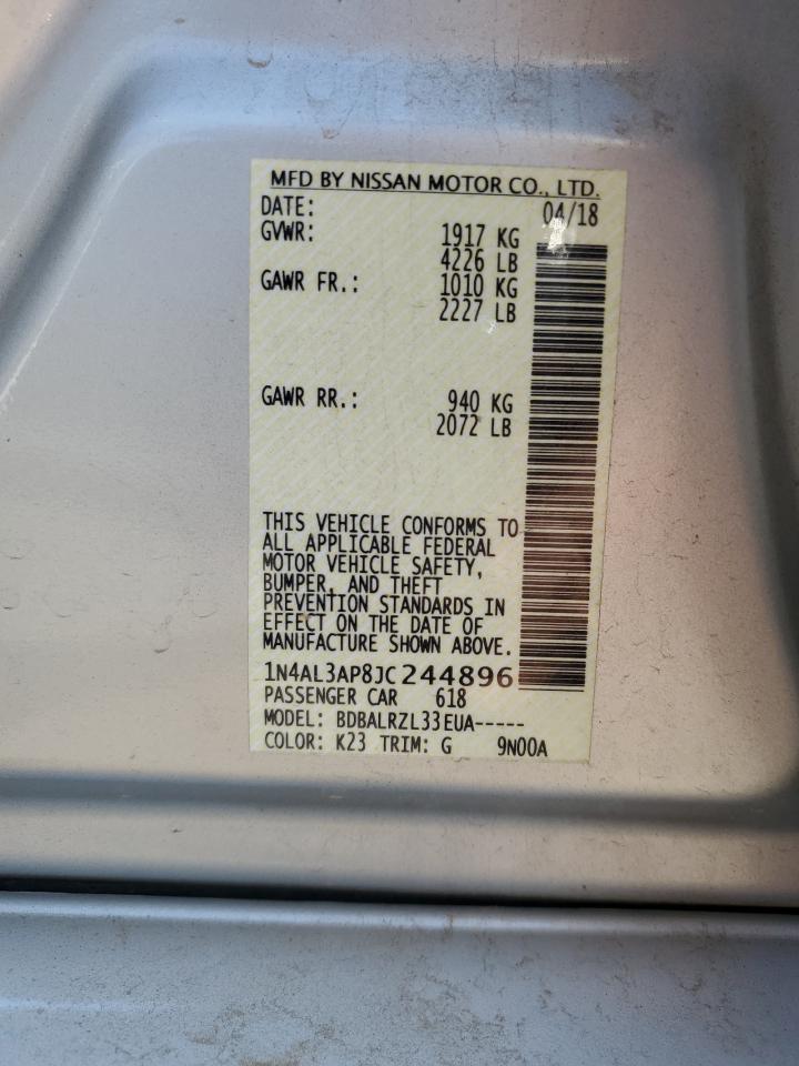 2018 NISSAN ALTIMA - 1N4AL3AP8JC244896, цвет - Серебряный, 2.5, Бензин, из США