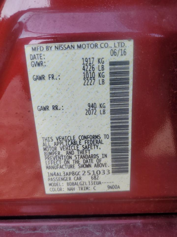 2016 NISSAN ALTIMA - 1N4AL3AP8GC251033, цвет - Красный, 2.5, Бензин, из США