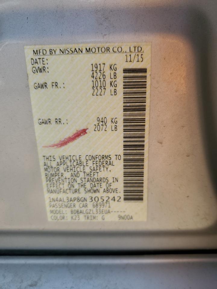 2016 NISSAN ALTIMA - 1N4AL3AP8GN305242, цвет - Серебряный, 2.5, Бензин, из США