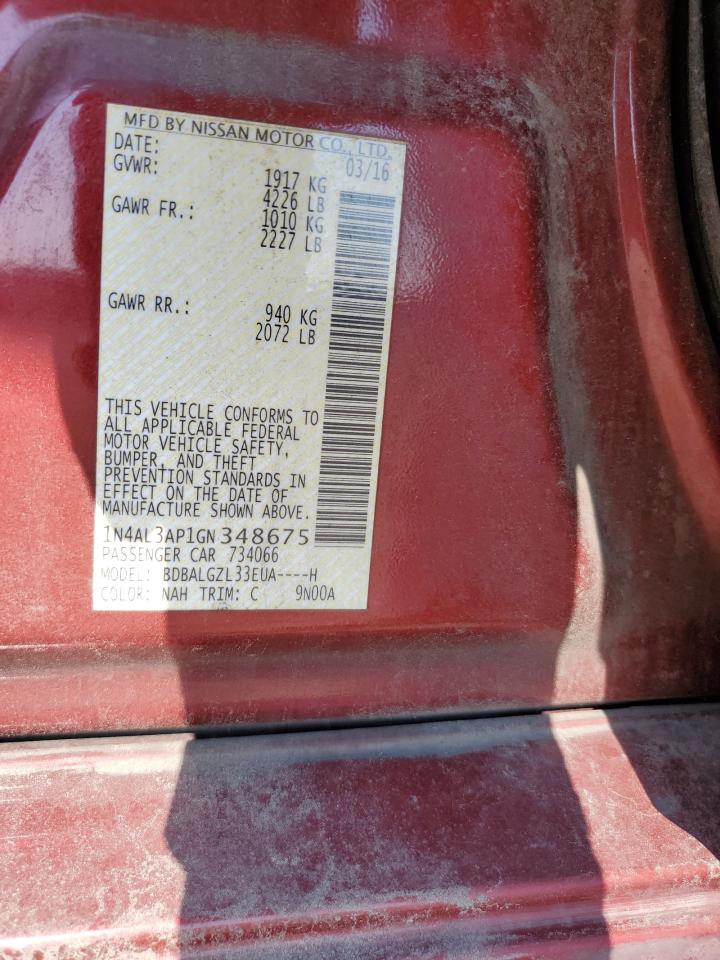 2016 NISSAN ALTIMA - 1N4AL3AP1GN348675, цвет - Красный, 2.5, Бензин, из США