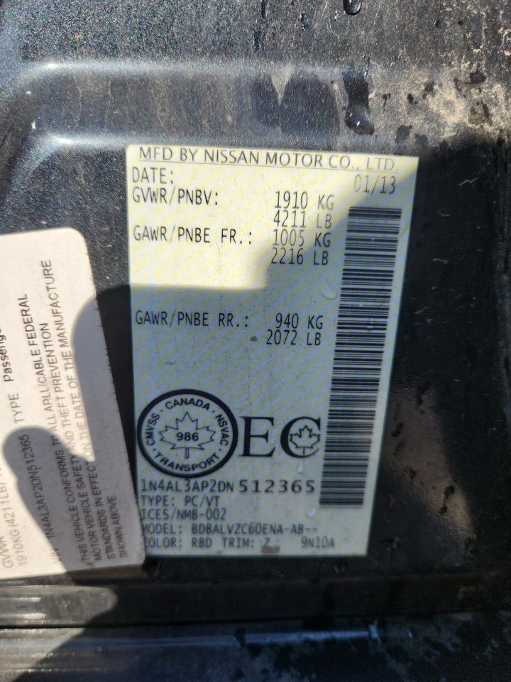 2013 NISSAN ALTIMA - 1N4AL3AP2DN512365, цвет - Древесный уголь, 2.5, Бензин, из США