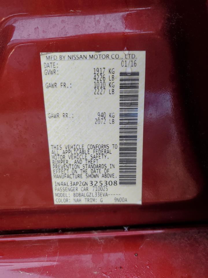 2016 NISSAN ALTIMA - 1N4AL3AP2GN325308, цвет - Красный, 2.5, Бензин, из США