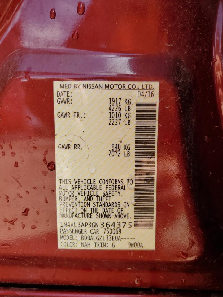 2016 NISSAN ALTIMA - 1N4AL3AP3GN364375, цвет - Бургундия, 2.5, Бензин, из США