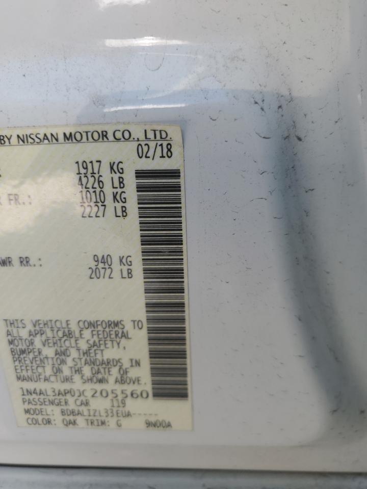 2018 NISSAN ALTIMA - 1N4AL3AP0JC205560, цвет - Белый, 2.5, Бензин, из США